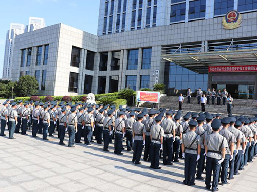 2019年7月24日,懷化市保安主題宣傳日活動(dòng)暨保安行業(yè)服務(wù)國(guó)慶安保工作誓師儀式在市公安局舉行。踐行新使命 忠誠(chéng)保大慶